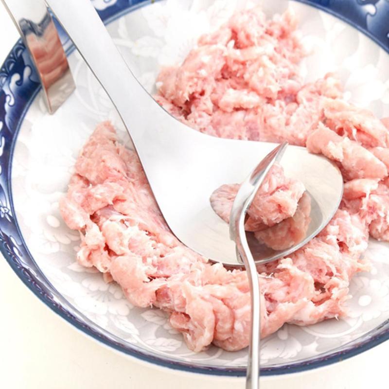 Pode ser usado para fazer almôndegas, bolinhos de peixe, bolinhos de arroz, bolinhos de legumes e muito mais. Você pode simplesmente pressionar a colher na carne picada, depois usar outra colher e obter uma almôndega perfeita!